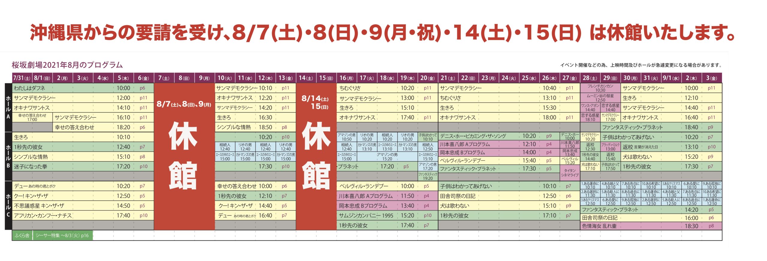 上映プログラム(週別)